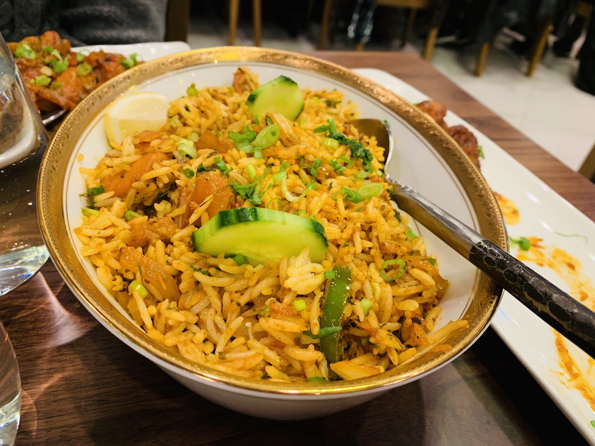 For the main course, dishes like the rich, creamy butter chicken and the smoky tandoori chicken stand out, showcasing the depth of Indian cuisine. The biryani, with its fragrant rice and tender meat, is another popular dish that never disappoints. Every dish is accompanied by naan or basmati rice, allowing the bold flavors to truly shine.